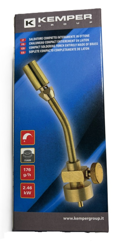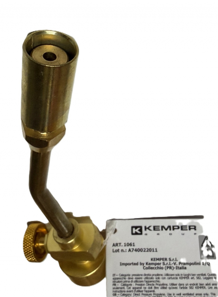 Profesionální hořák k přímému připojení na propylénovou plynovou kartuši s US závitem (CGA600) např. Bernzomatic Pro-MAX™, US závit. Vyrobený celý z mosazi. Nastavitelný plamen. Plamen s velmi vysokou teplotou 2400°C. Ideální pro tvrdé pájení, ohřev a odstraňování nátěrů a pod.