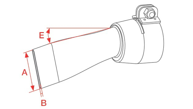 Přeplátovací násuvná rohová tryska 20mm, 60º vyhnutá (levá) pro přístroje TRIAC s připojením ø 31,5 mm. Délka štěrbiny (A) 20 mm, Šířka štěrbiny (B) 2 mm, Úhel (E), 60°.