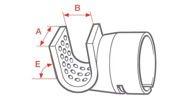 Leister tryska reflektorová děrovaná (ø 31.5) 35 x 20 mm 75° zahnutá, pro Triac S, ST, AT, PID. Tato reflektorová tryska je vhodná pro širokou škálu smršťovacích prací včetně výroby kabelů. Připojení trysky ø 31,5 mm. Délka reflektoru (A) 35 mm. Šířka reflektoru (B) 20 mm. Úhel (E) 75°