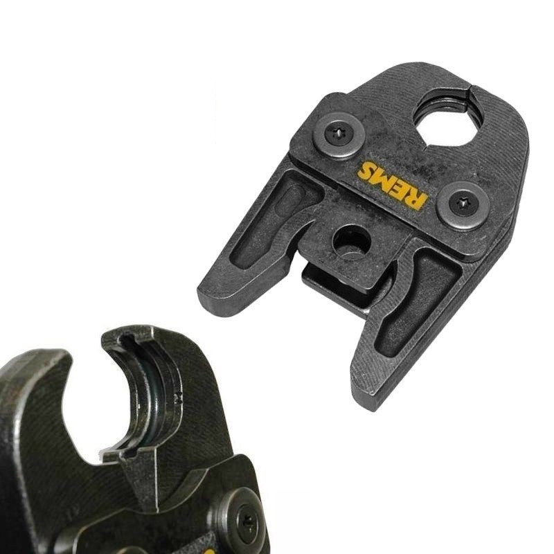 Příslušenství pro REMS Power-Press, REMS Power-Press ACC, REMS Power-Press E, REMS Akku-Press, REMS Akku-Press ACC a jiné lisovací stroje. Vysoce zatížitelné lisovací kleště REMS z kované speciální oceli. Správný výběr materiálu, přesné opracování a speciální tepelné zpracování jsou rozhodující pro dlouhotrvající a bezpečnou funkci lisovacích kleští REMS. Během procesu lisování mohou na lisovacích kleštích vzniknout potřebné lisovací síly až 100 kN (10 t), které musí být bezpečně lisovacími kleštěmi pojmuty. Lisovací kleště REMS jsou proto vyrobeny z kované a zvláště kalené speciální oceli o vysoké pevnosti. Příslušný, systému odpovídající lisovací obrys je spolu s potřebným vnějším opracováním lisovacích kleští a s označením lisovacího obrysu a velikosti trubky velmi precizně vyroben v CNC-obráběcích centrech a strojně exaktně zaoblen. Díky speciálnímu tepelnému ošetření lisovacích kleští ve vlastní kalírně je dosaženo ideální kombinace pevnosti a houževnatosti. Tento výrobní proces zaručuje, že je vytvořený lisovací obrys správně a s dlouhou životností přenesen na lisované spojení. Na základě tohoto vysokého standardu kvality jsou lisovacími kleštěmi REMS po celém světě mnohomilionkrát vytvářena bezvadná, systému odpovídající, bezpečná lisovaná spojení. Lisovací kontura M pro systémy: Geberit Mapress, NIROSAN, IMI, YORKSHIRE, SANHA, PREXTO, SIMPLEX, EUROTUBI, GF PRESS ...