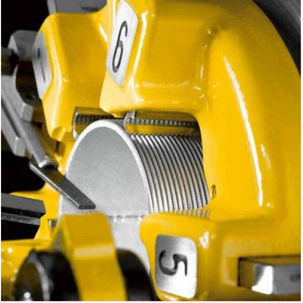 REMS Magnum - robustní, kompaktní vysoce výkonný stroj na řezání závitů, odřezávání trubek, odhrotování, výrobu vsuvek, výrobu obvodových drážek válcováním. Pro instalaci, dílny pracující s kovem, průmysl. Na staveniště i do dílny. Rozsah: Trubkové závity 1/4–4˝, šroubové závity 6 – 63 mm. Komplet se závitořeznými čelistmi pro trubkové závity R 1/2-3/4˝, R 1-2˝. Přepólovatelný kondenzátorový motor 230V, 50 - 60 Hz, 2100W, 52/26 ot/min i při plném zatížení, velmi tichý chod. Přenosné provedení L-T, s odnímatelnou velkou vanou na olej a nádobou na třísky. Na pracovní stůl, podstavec anebo jezdící podvozek (volitelné příslušenství) s místem k odkládání materiálu.