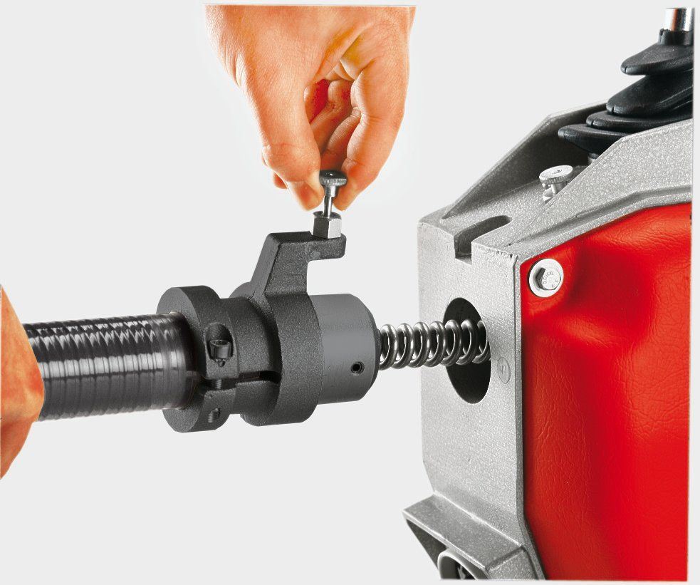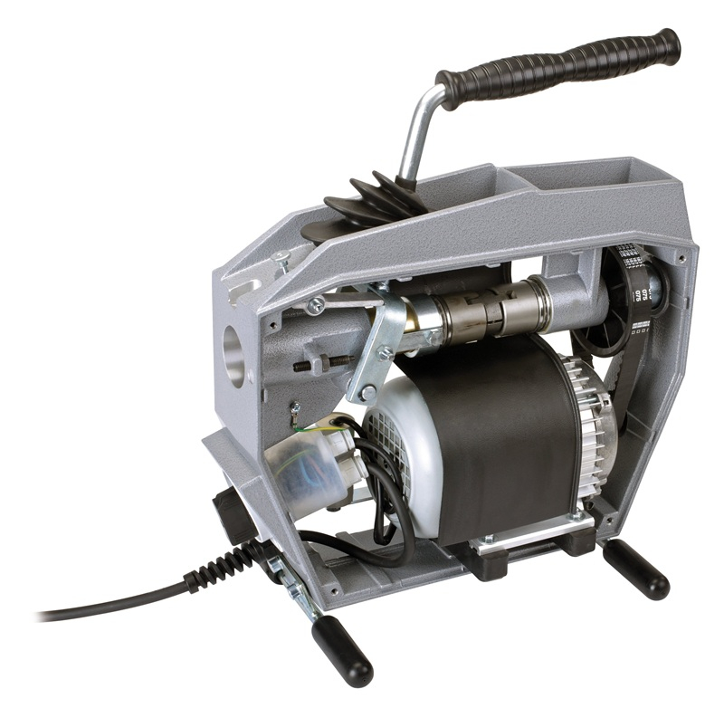 Čistící stroj pro profesionální, mobilní čištění potrubí. Kompaktní, robustní konstrukce, vysoká průchodnost potrubím i při odolných usazeninách. Pro čištění potrubí pr. 20 -150 mm, průměr spirály 22/16 mm. Profesionální, mobilní, robustní. Optimální přenos výkonu motoru na spirálu díky patentovanému systému CENTER-LOCK. Technické parametry: Maximální pracovní délka: 60 m / průměr 22 mm S-spirála. 50 m / průměr 16 mm S-spirála. 10 m / průměr 8/10 mm Spirála. Výkon 690 W. Hmotnost 20,9 kg. Otáčky motoru 467 ot/min. Obsah balení: Pohonná jednotka 230V