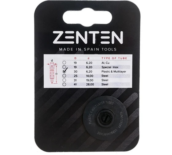 Řezné kolečko na plastové a vícevrstvé trubky do maximální tloušťky stěny trubky 8,60 mm. Rozměry: D - 30 mm, d - 4,85 mm, W - 6,2 mm.